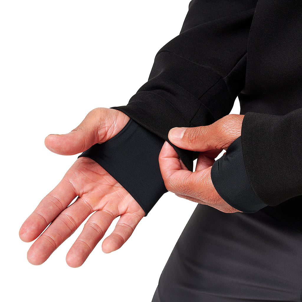 The Voyager Hoodie is a super clean and comfortable hoodie. Using a mid-weight soft and stretchy double-knit fleece it is perfect for cold morning workouts or just wanting to stay warm. There is a subtle stash pocket, zippered chest pocket for plenty of storage, and a gator cuff system that adds comfort you will find unique from other fleece styles.